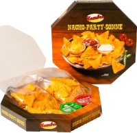 Box ready to serve, consisting of: 2x150 g nachos 3x90 g dips (salsa, cheese, sour cream)